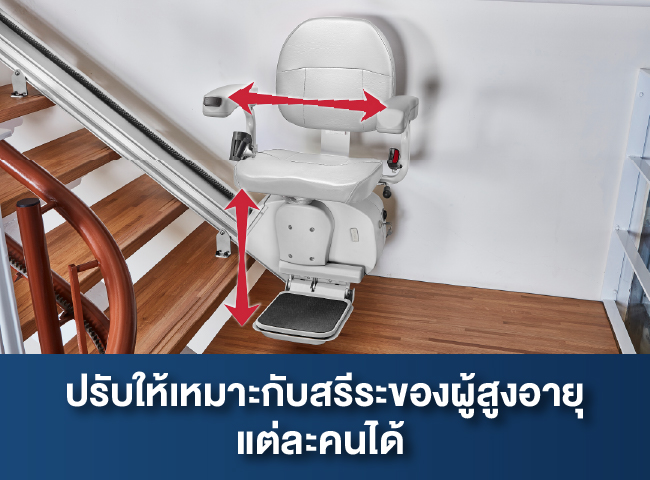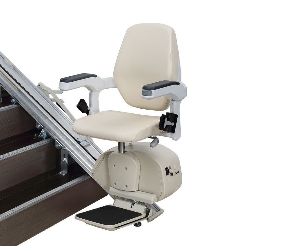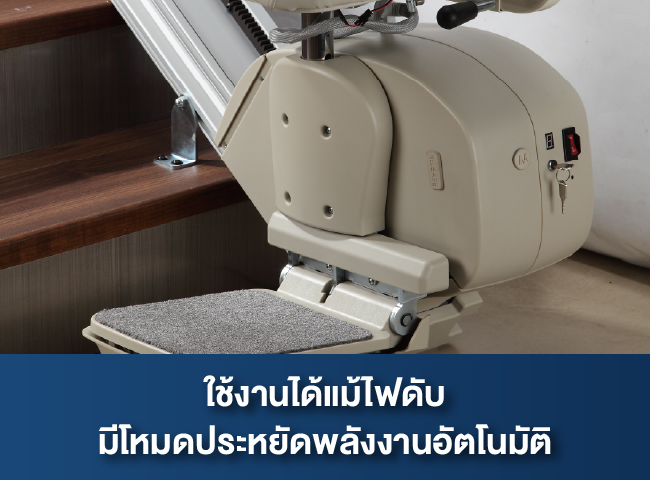 Folding Seat & Footrest — Fold-away design allows others to use the staircase freely when the unit is folded